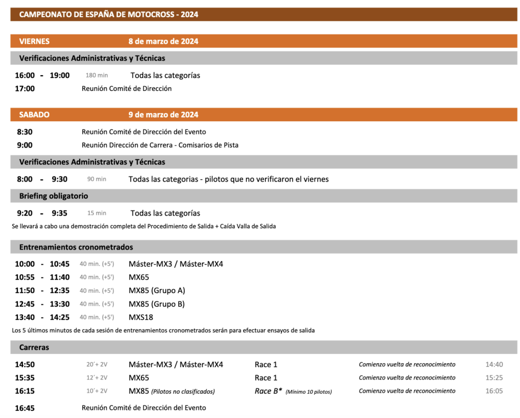 Debido al alto número de inscritos en MX85 se ha tenido que conformar un horario por grupos.