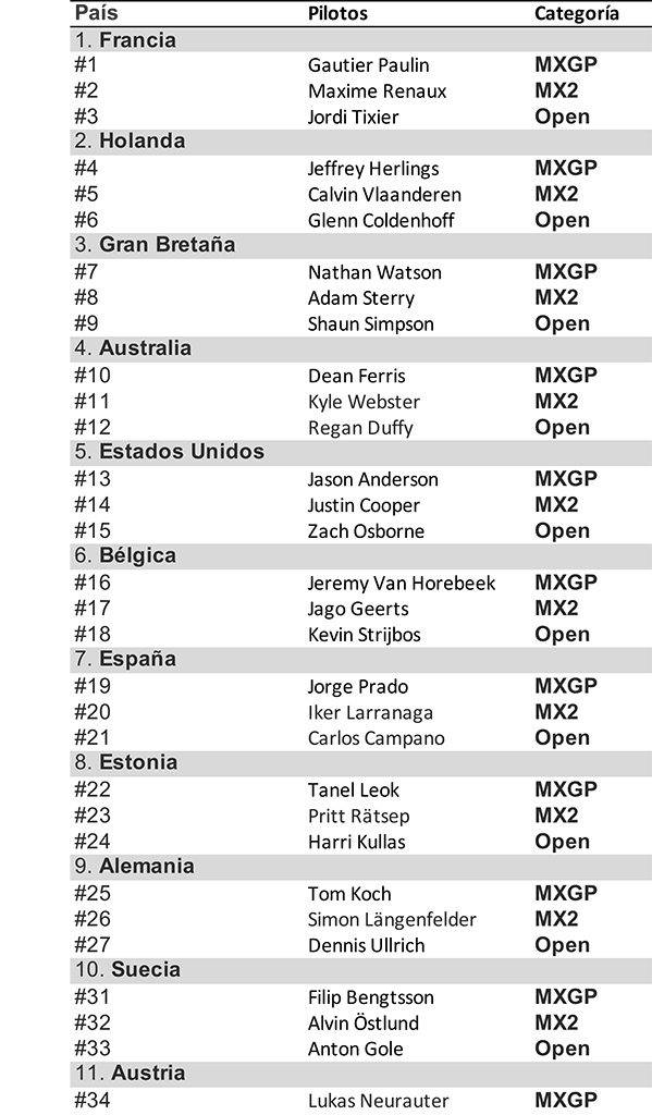 Para tener claros los equipos definitivos hemos actualizado la lista previa con las altas y bajas que se han producido, y así han quedado los combinados de los 34 países que estarán en Assen: