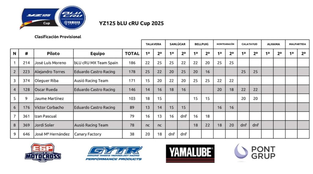 La quinta prueba de la YZ125 bLU cRU Cup 2025 se ha celebrado este fin de semana en el circuito Castillo de Ayud de Calatayud. Han sido dos intensas jornadas en un trazado muy rápido en el que los pilotos de la copa de promoción de Yamaha han vuelto a tener que exprimirse a fondo para superar tanto a rivales como a las exigencias del terreno.