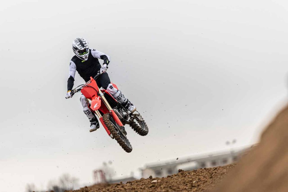 Curiosamente, la CRF es muy estable en suelo, pero algo más difícil de manejar en el aire en comparación con la KTM o la Triumph.