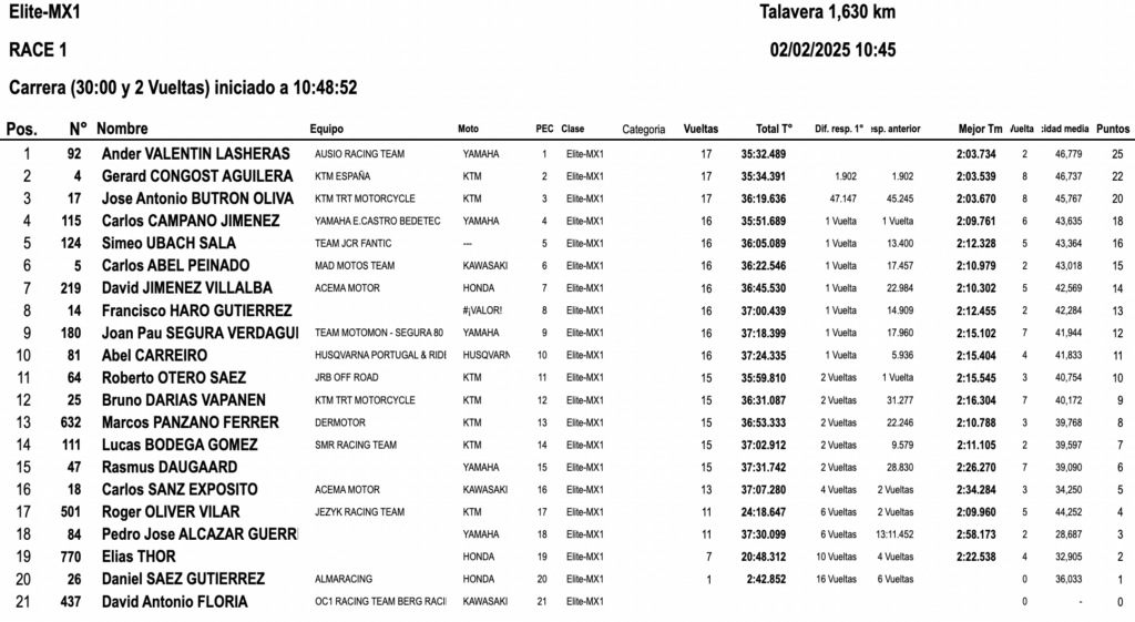 Ander Valentín ha comenzado por todo lo alto el Campeonato de España de Motocross 2025 en categoría MX1. El piloto de Yamaha Ausió ha logrado el triunfo en Talavera de la Reina, tras llevarse las dos mangas, por lo que se convierte en el primer placa roja de la temporada.