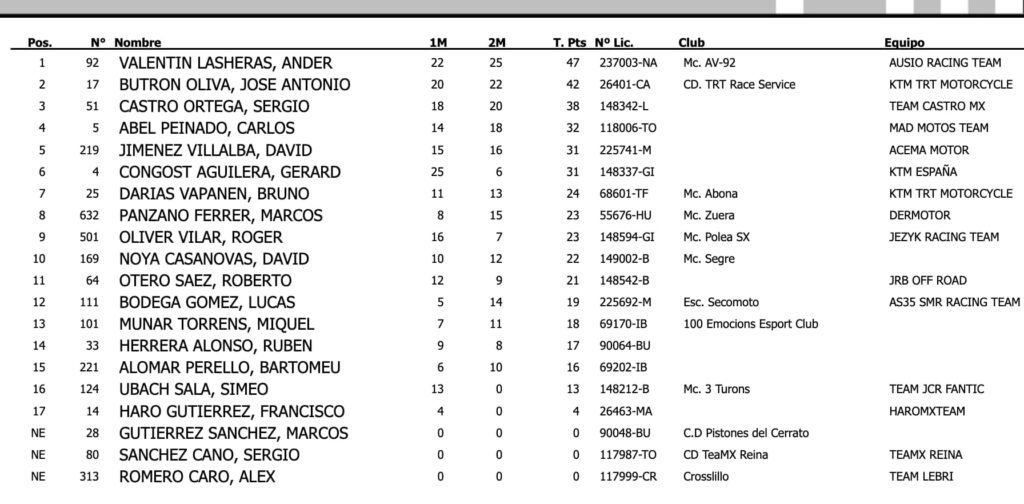 En la segunda caída de valla era Valentín quien se ponía en cabeza y ya no la dejaba hasta la bandera a cuadros. En segunda plaza ha acabado Butrón, que volvía a irse al suelo de manera muy fea y llegaba a la zona de podio con un corte en su muslo derecho largo y profundo, lo que la he hecho pasar también revista con los servicios médicos.