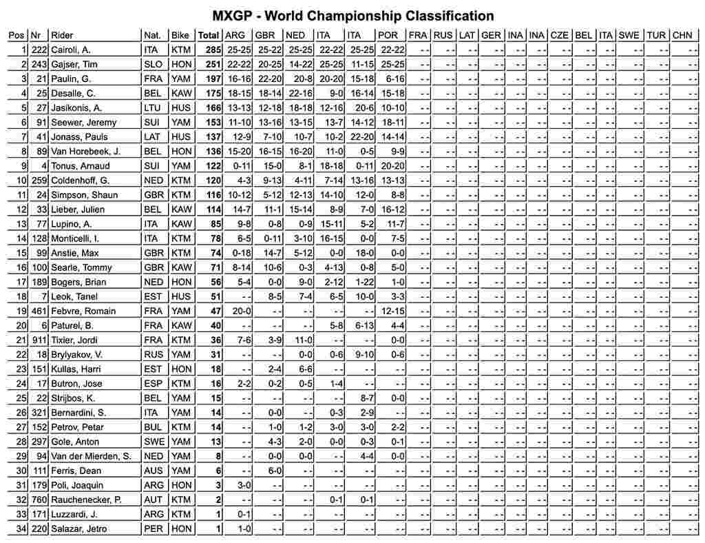 Así están las provisionales de ambas clases antes que mañana arranque oficialmente la acción en St. Jean D’Angely: