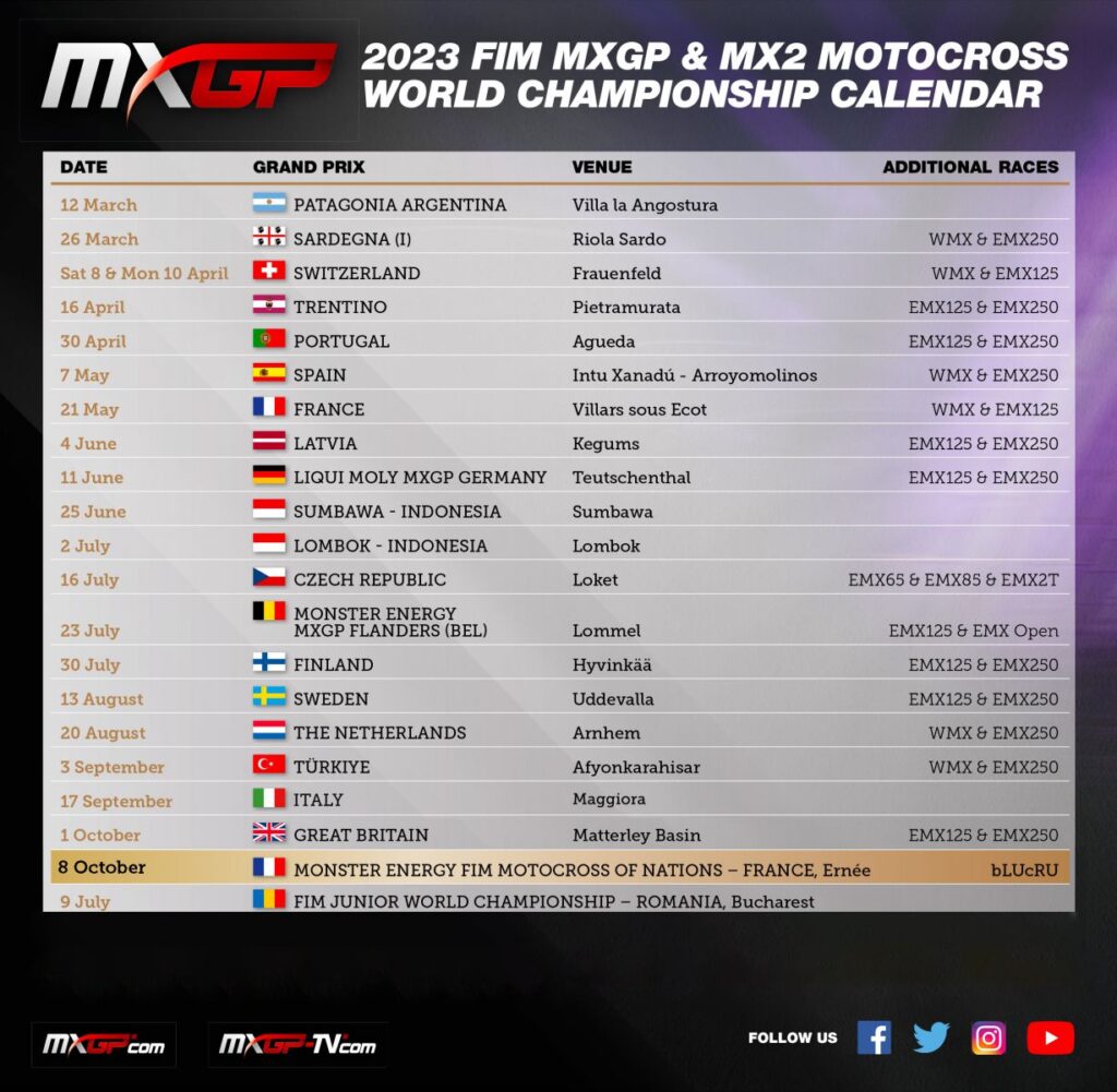 Although the first third of the season is almost over, the MXGP World Championship continues to make updates to its calendar. Vietnam has been deleted from the calendar. Instead, the historic Maggiora circuit, which initially was not scheduled to host any Grand Prix this year, will replace it. Also, there are new updates about the Motocross of European Nations. The event was planned for October 15, just one week after the MXoN in Ernée, France. However, the event was changed. This is the official press release from Infront Moto Racing: