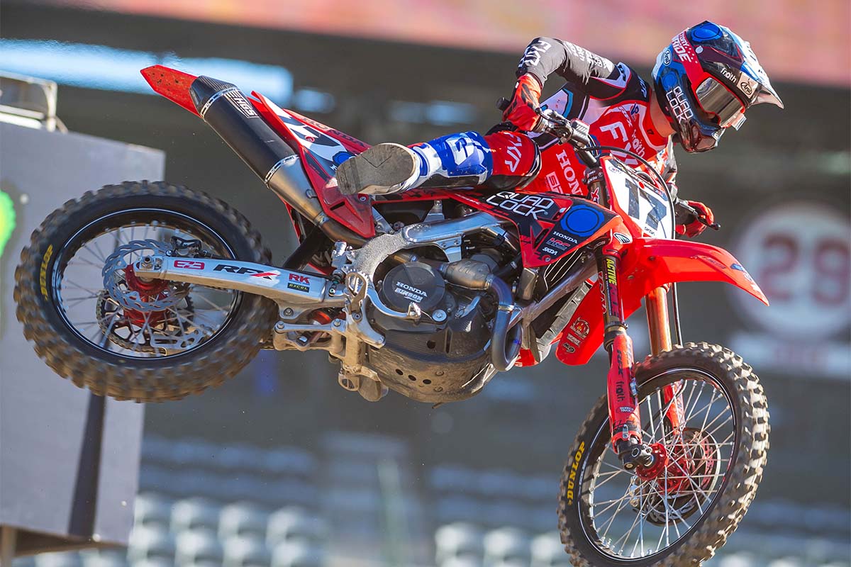 In the premier 450SX class, the spotlight remains on Hunter Lawrence and Eli Tomac, who are separated by just a handful of points. While Cooper Webb and Ken Roczen have slipped to more than 20 points back, they’re still within striking distance with plenty of racing left.