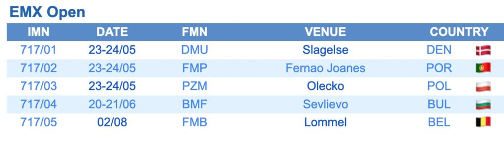 La FIM Europa y la Comisión de Motocross se complacen en anunciar la publicación de los calendarios 2026 del Campeonato Europeo Open EMX, el Campeonato Europeo EMX65/EMX85 y el Campeonato Europeo Femenino EMX.
