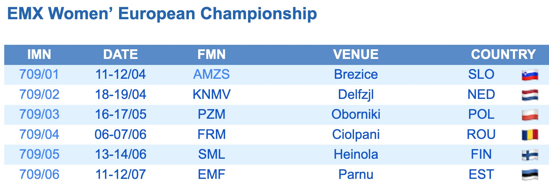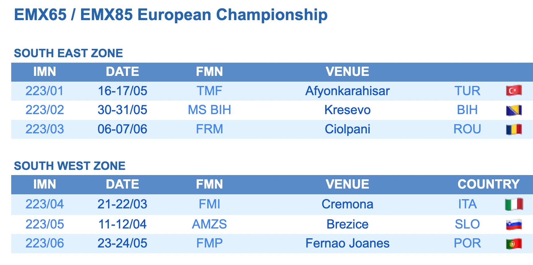 La FIM Europa y la Comisión de Motocross se complacen en anunciar la publicación de los calendarios 2026 del Campeonato Europeo Open EMX, el Campeonato Europeo EMX65/EMX85 y el Campeonato Europeo Femenino EMX.