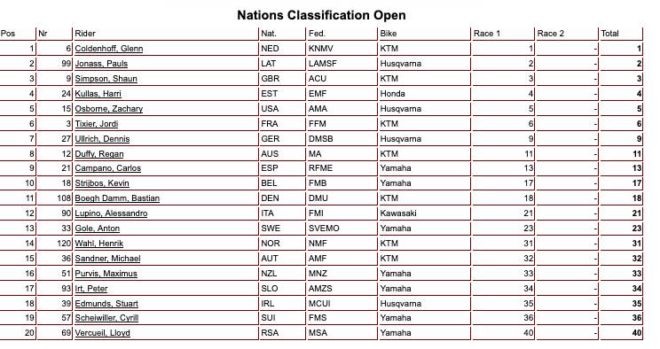 Con Jorge Prado tercero en MXGP estos han sido los resultados de las mangas disputadas hasta el momento: