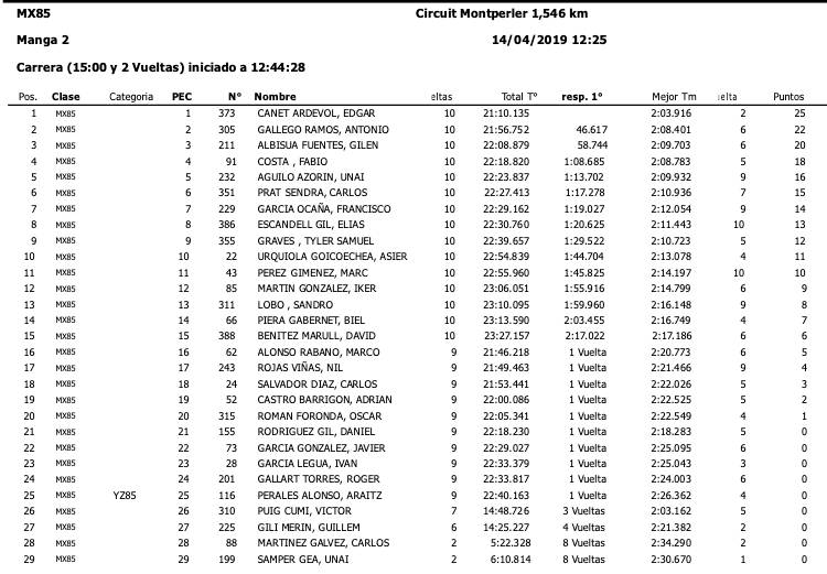 Edgar Canet se ha llevado también la segunda manga del Nacional de 85cc en Bellpuig. El catalán ha dominado de principio a fin y tan solo ha tenido a un rival en toda la carrera, el líder Víctor Puig, que ha visto como se le escapaba la lucha por el triunfo al sufrir una caída que le relegaba varias posiciones.