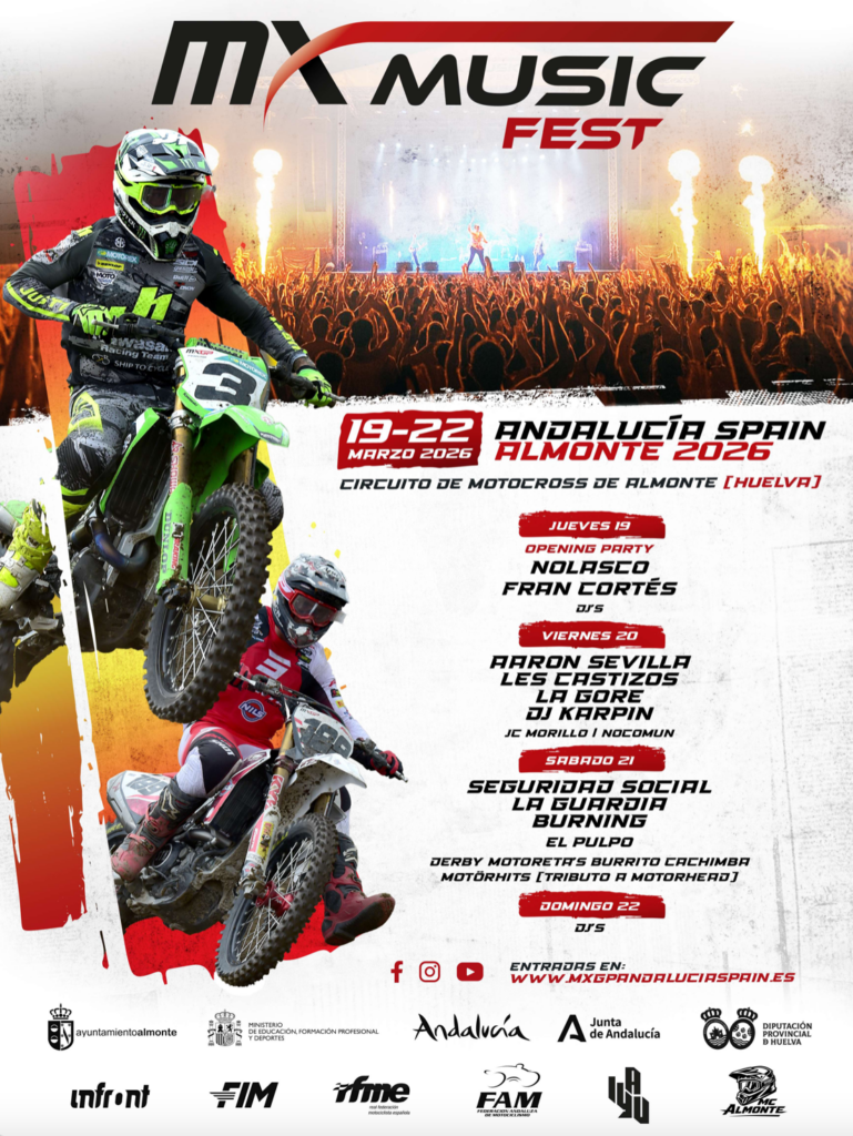 La primera prueba del Mundial de MXGP en Europa promete ser inolvidable. El MXGP de Andalucía Almonte presenta también un cartel musical en paralelo al rugir de los motores de las motocicletas. El MX Music Fest ya tiene su programación y desde el jueves y hasta el domingo todos los asistentes disfrutarán de música en directo.