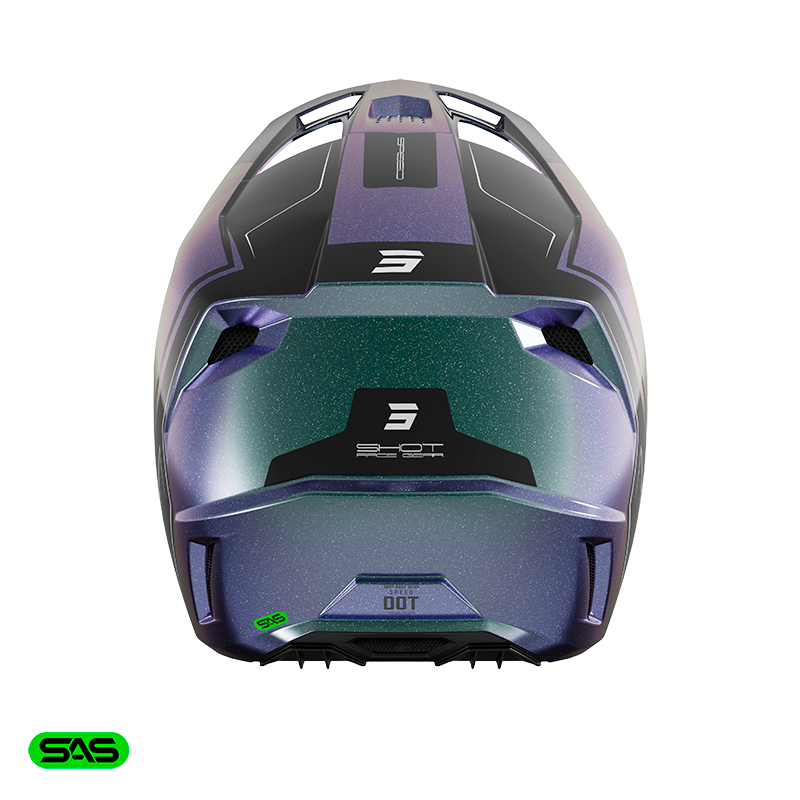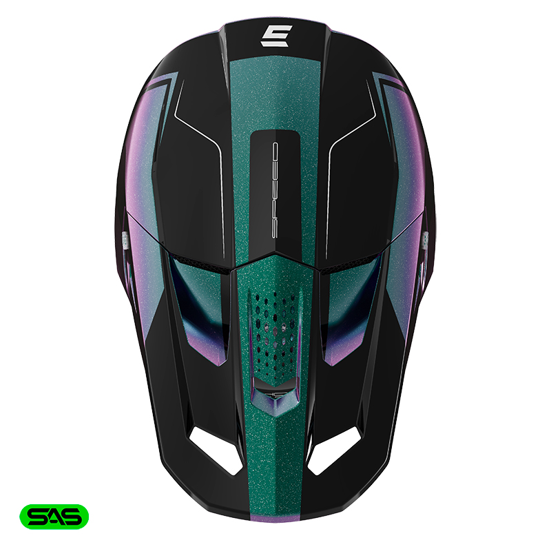 El casco Speed cuenta con una calota reforzada en material sintético SRS, diseñada para absorber impactos de forma eficaz. Incorpora además el sistema de absorción de impactos SAS, que ayuda a reducir el riesgo de lesiones cerebrales en caso de accidente.