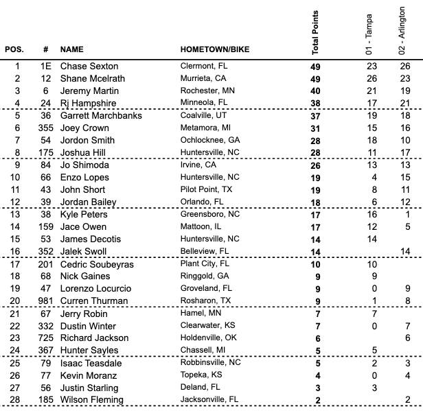 Clasificaciones provisionales AMA SX antes de Atlanta