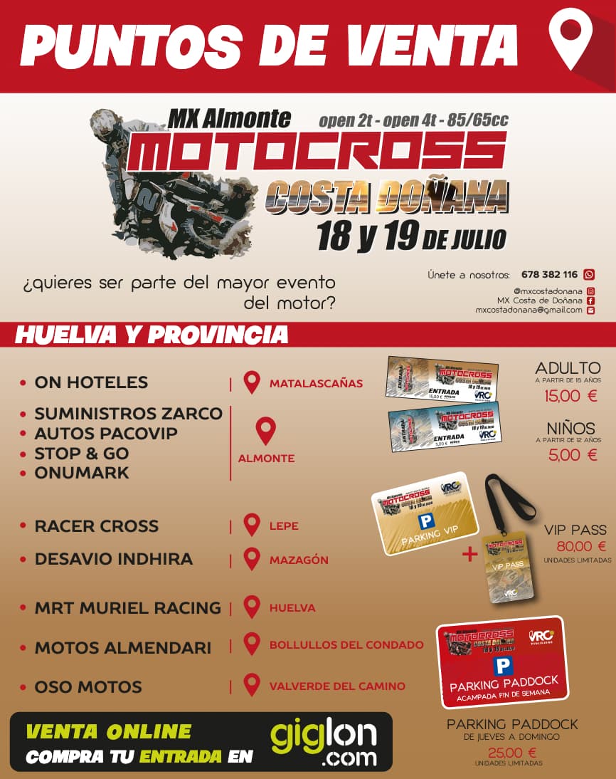 Ya está casi todo preparado para vivir una de las carreras de mayor calado del verano en España, el MX Costa Doñana, que se celebrará en el circuito de Almonte el 18 y 19 de julio.
