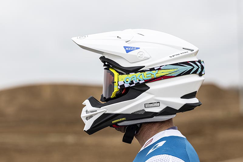 Este competitivo modelo viene con una única base pero con 6 modelos de gráficos diferentes con versiones de colores distintas, pudiendo encontrar hasta 16 combinaciones. Incorpora el sistema de distribución de energía de movimiento (M.E.D.S.) que se encarga de reducir la energía rotacional que sufre la cabeza del piloto para una mejor absorción de los grandes impactos en las caídas y también el sistema de EQRS, que en caso de emergencia permite sacar el espumado con más facilidad, evitando posibles lesiones en el cuello. Incluye cierre de doble anilla con el clásico cierre de doble ‘D’, interiores desmontables y lavables con acolchados de absorción de sudor y secado rápido.