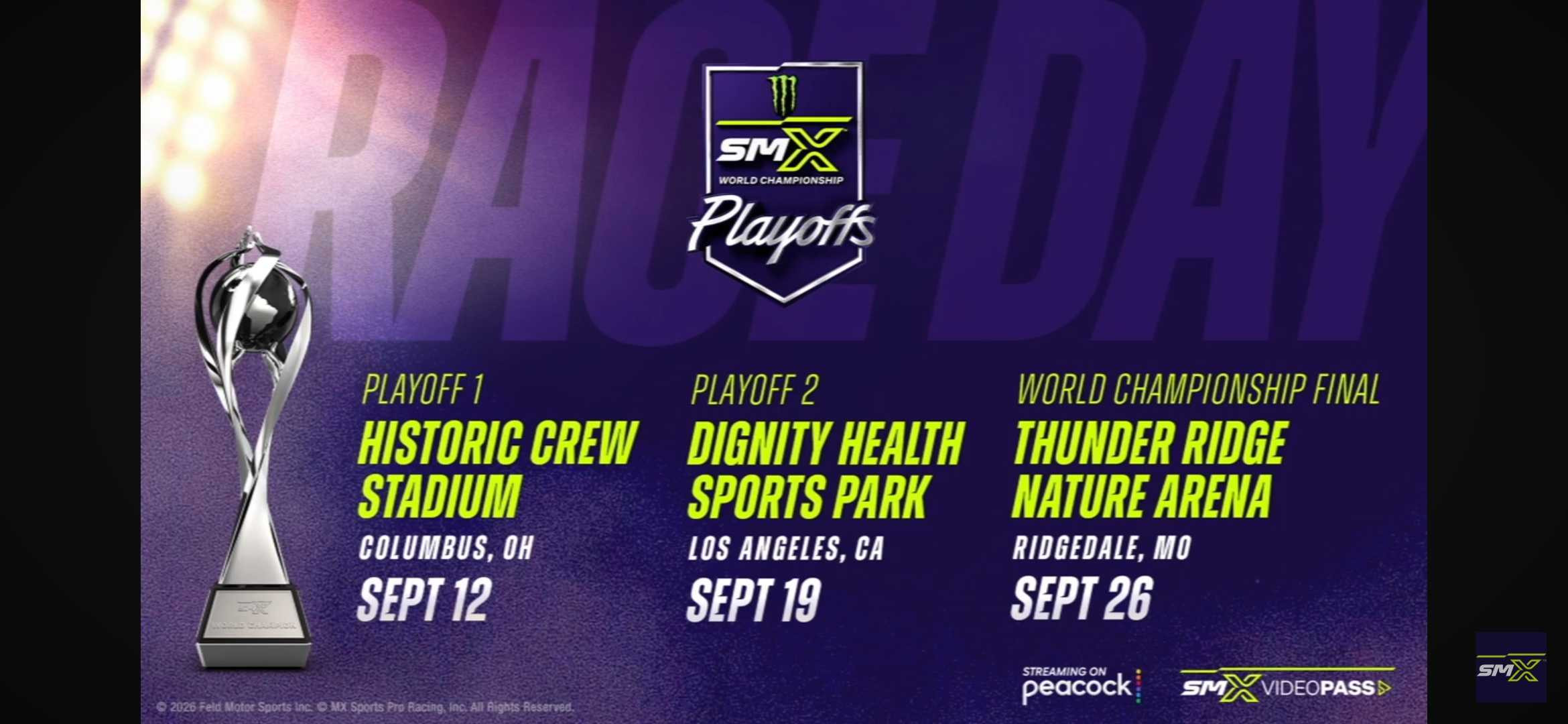 Durante la conferencia de prensa de Anaheim 1, primera cita del AMA Supercross que se celebrará este sábado 10 de enero, fueron anunciadas las sedes para las finales del SuperMotocross, certamen que se disputa al final de los campeonatos AMA Supercross y AMA Pro Motocross, al cual acceden los 20 mejores pilotos clasificados en la suma de puntos de ambas disciplinas.