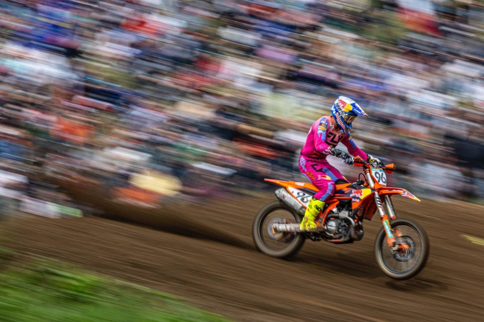 Tras marcar el mejor tiempo en los cronos, Lucas Coenen (Red Bull KTM) mantuvo el control absoluto de la manga clasificatoria, liderando cada vuelta con autoridad. La atención se centró en el duelo por el segundo puesto entre Kevin Horgmo y Romain Febvre, en el que el noruego dio la sorpresa y terminó 2.º, logrando su primer Top 3 en MXGP justo después de renovar con SR Motoblouz Honda.