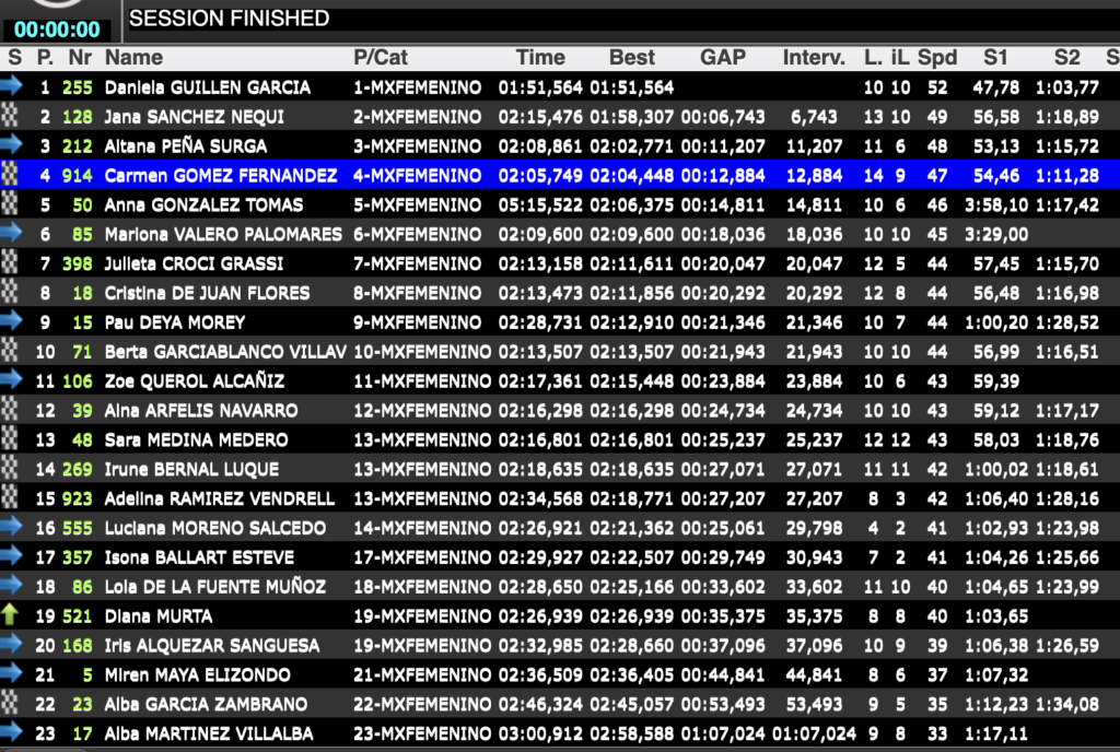 Jana Sánchez ha conseguido el segundo mejor tiempo por delante de Aitana Peña, Carmen Gómez y Anna González, encargadas de cerrar el Top 5.