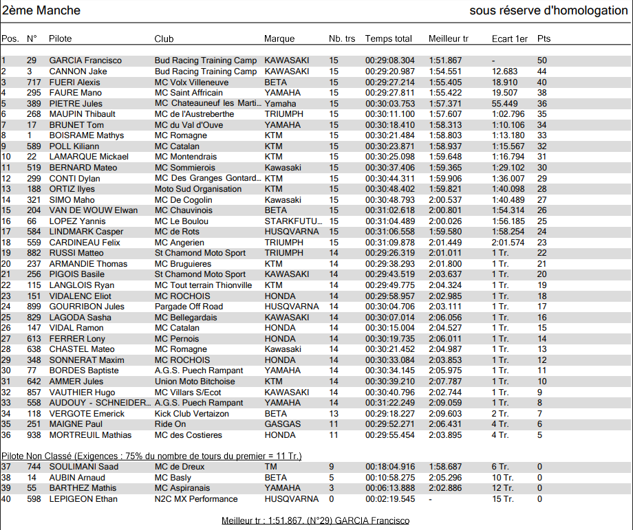 Fran Carbonero ha logrado la victoria en la primera prueba del Campeonato Nacional Francés de Motocross, celebrado en Castelnau de Lévis. En la que será su última prueba de pretemporada, el piloto de Kawasaki Bud Racing se ha impuesto con suma solvencia en las dos mangas, en las que ha estado seguido a más de diez segundos por su compañero de estructura Jake Cannon.
