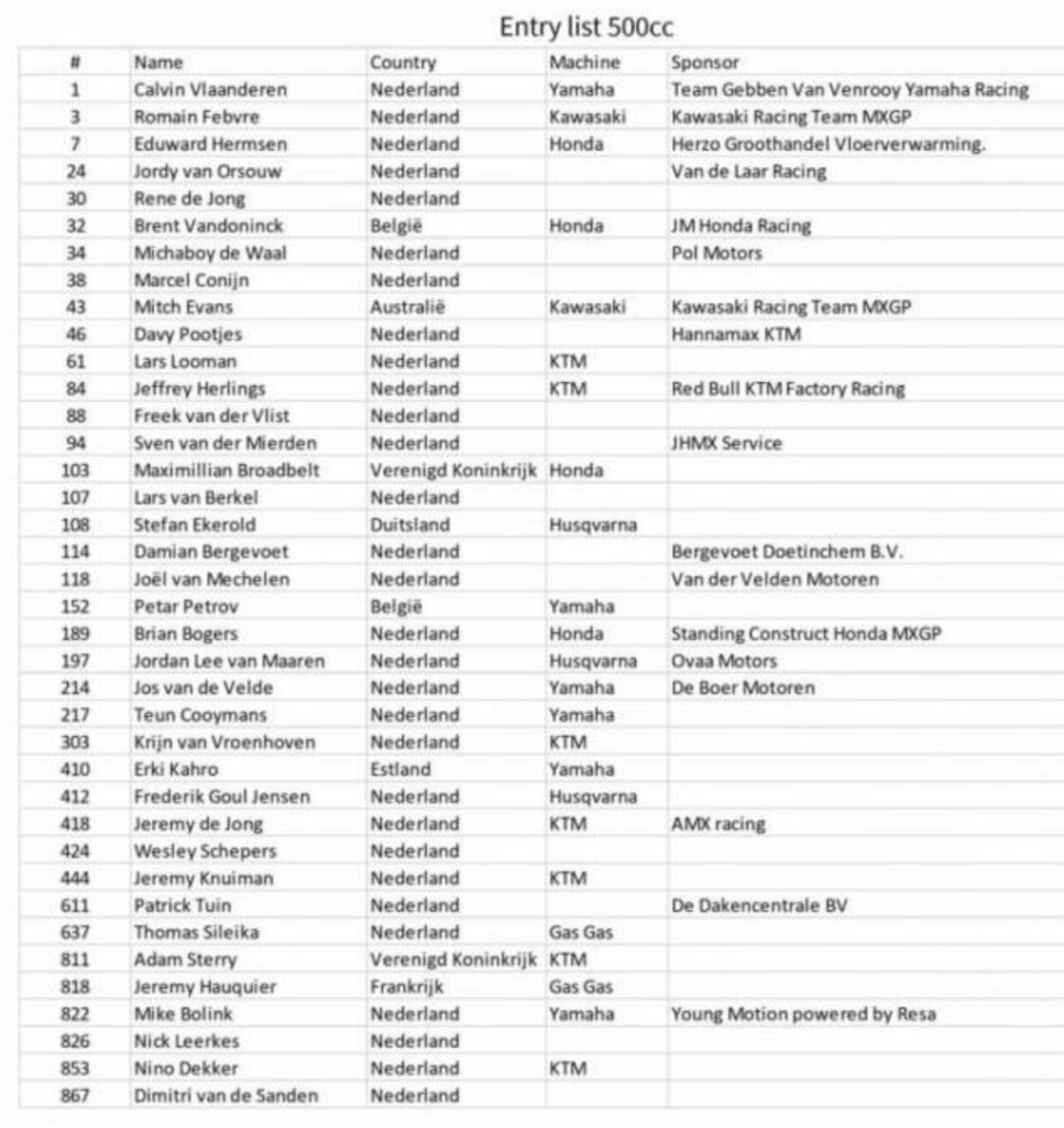 También destacan los nombres de Jeffrey Herlings, Romain Febvre o Calvin Vlaanderen que, lejos de descansar con el parón del Mundial de MXGP, seguirán en competición.