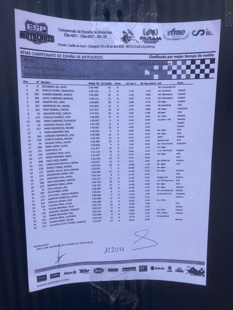 Salvador Pérez, segundo clasificado provisional del campeonato, no ha podido bajar de la décima posición, aunque cabe destacar que todavía se está amoldando a su nueva Yamaha Oficial con la que disputará el Europeo a partir de la semana que viene en Suiza.