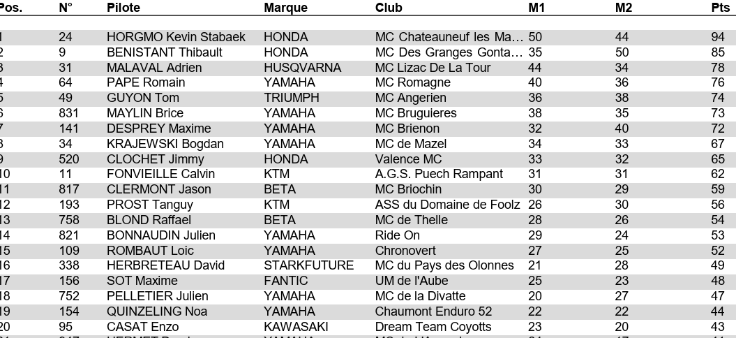 Thibault Bénistant también quedó involucrado en el incidente. En cabeza, el vigente campeón Kevin Horgmo tomó rápidamente el control hasta la bandera a cuadros. Adrien Malaval, en un notable regreso tras pasar por quirófano (menisco y antebrazo), firmó una gran segunda posición, mientras que Romain Pape completó el top 3. Por detrás, Bénistant y Desprey protagonizaron una destacada remontada para terminar sexto y séptimo, respectivamente, minimizando daños.