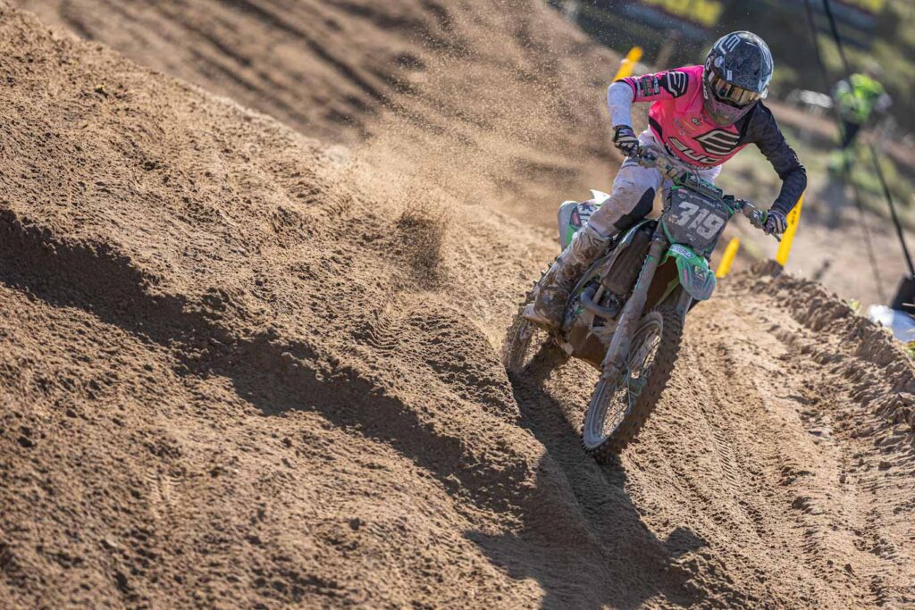 La segunda posición del global le ha pertenecido a Quentin Prugnieres. El piloto francés de BUD Racing Kawasaki fue uno de los grandes protagonistas del fin de semana tras marcarse dos remontadas hasta los puestos de honores. En la segunda manga le plantó cara a las Yamaha de Bonacorsi y Van Erp hasta que una pequeña caída le apeo de la lucha por la primera posición.
