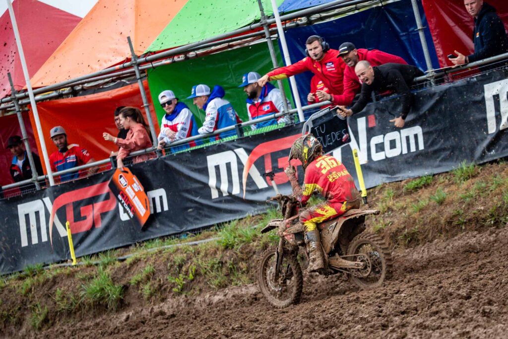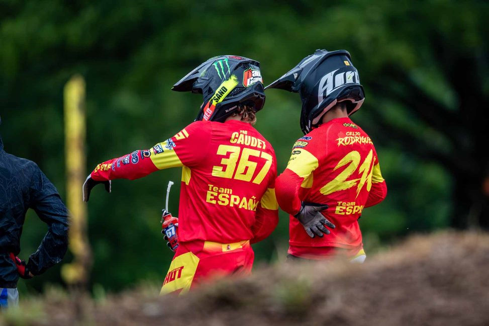 Tras la jornada clasificatoria del sábado para el Campeonato Mundial Junior de Motocross llegó la hora de competir en el circuito francés de Romagné. Sin embargo, los jóvenes pilotos se enfrentaron a condiciones mucho más duras de lo esperado, ya que la fuerte lluvia azotó la pista dejando una superficie muy resbaladiza. A pesar de las dificultades provocadas por el clima cambiante, el día fue brillante para el país anfitrión, ya que los pilotos del equipo francés se llevaron dos medallas de oro y una de plata, sumando un total de cuatro puntos en la clasificación por equipos.