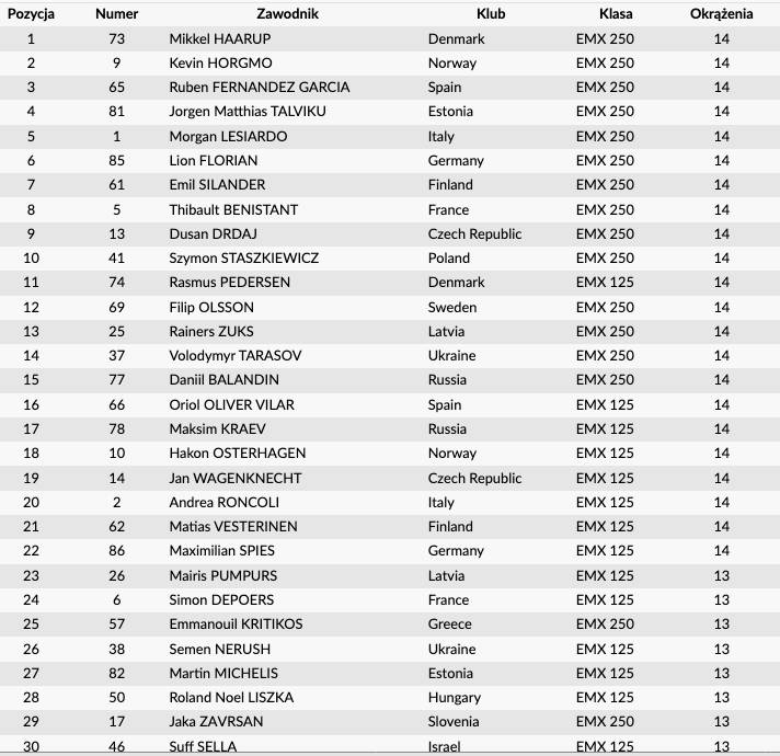 Rubén Fernández ha finalizado en la tercera posición en la manga clasificatoria del Motocross de las Naciones Europeas en la que participaban las 250+125cc. El gallego ha logrado ascender al podio provisional después de una manga en la que ha rodado en su mayor parte cuarto. Mikkel Haarup ha liderado de inicio a fin y Jorgen Mattias Talviku le ha seguido hasta los momentos finales, cuando se ha visto superado por Kevin Horgmo, segundo, y Fernández, finalmente tercero.