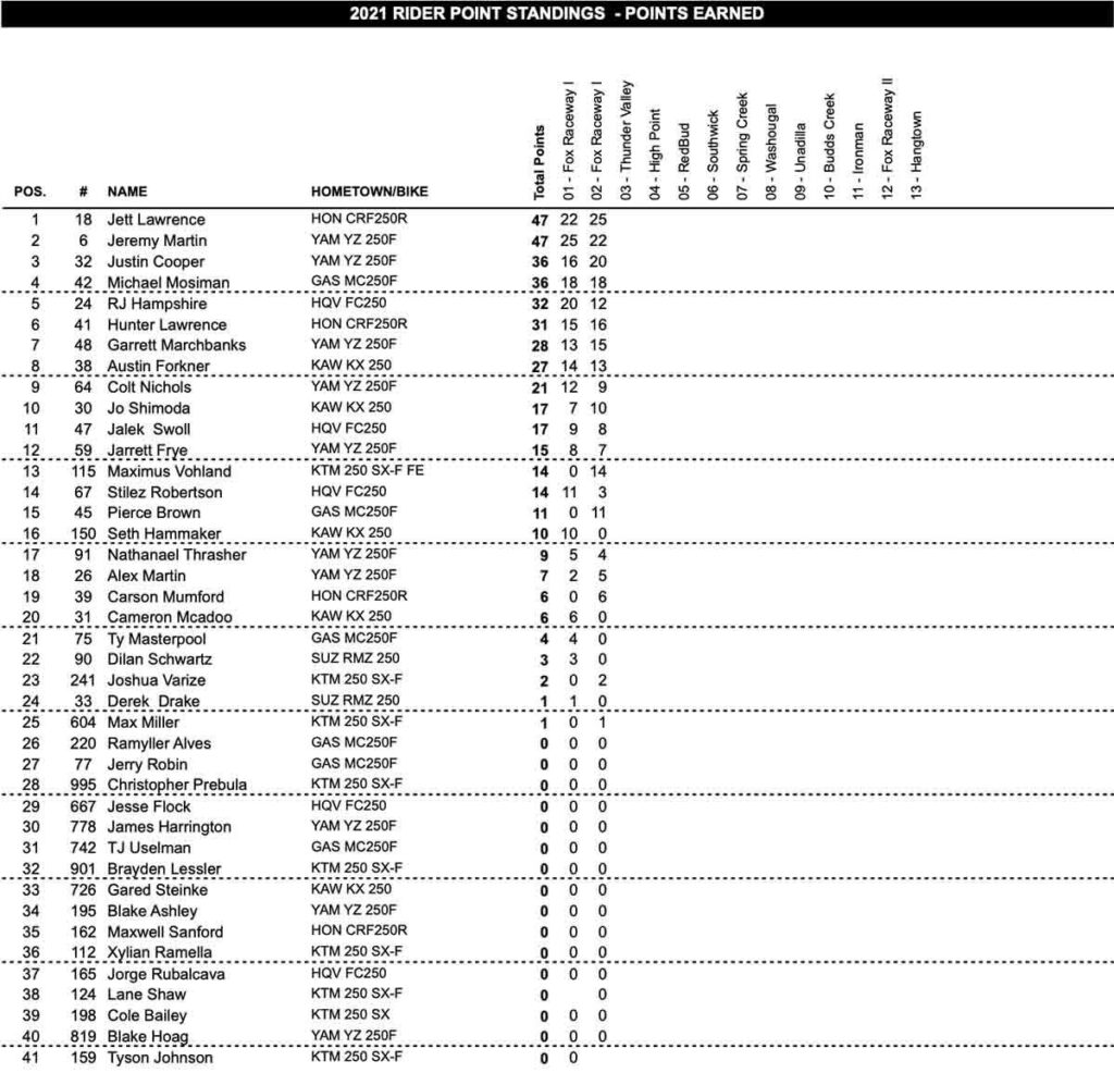 Dylan Ferrandis y Jett Lawrence se han convertido esta noche en los primeros líderes del AMA Motocross 2021, tras la ronda inaugural que se ha llevado a cabo en el circuito californiano de Fox Raceway, en Pala.