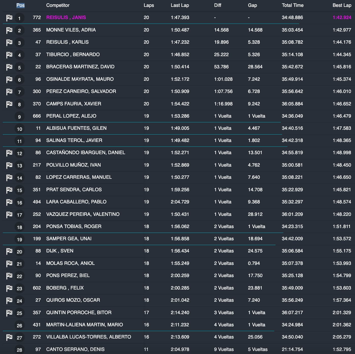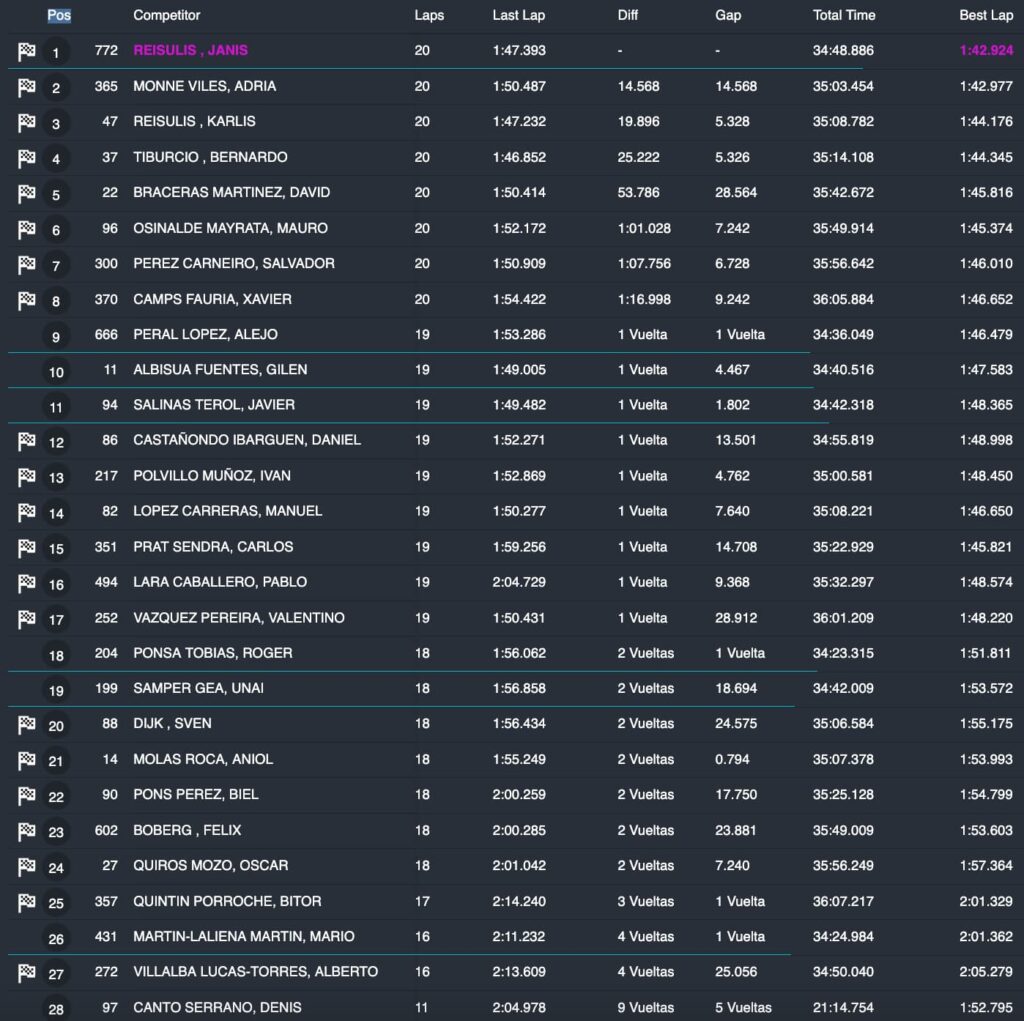 En la primera ha ganado a placer y le ha seguido su hermano Karlis, que tampoco ha tenido ningún rival durante la media hora más dos vueltas. Adrià Monné, que ha tenido que remontar tras la salida, se ha hecho con la tercera posición.