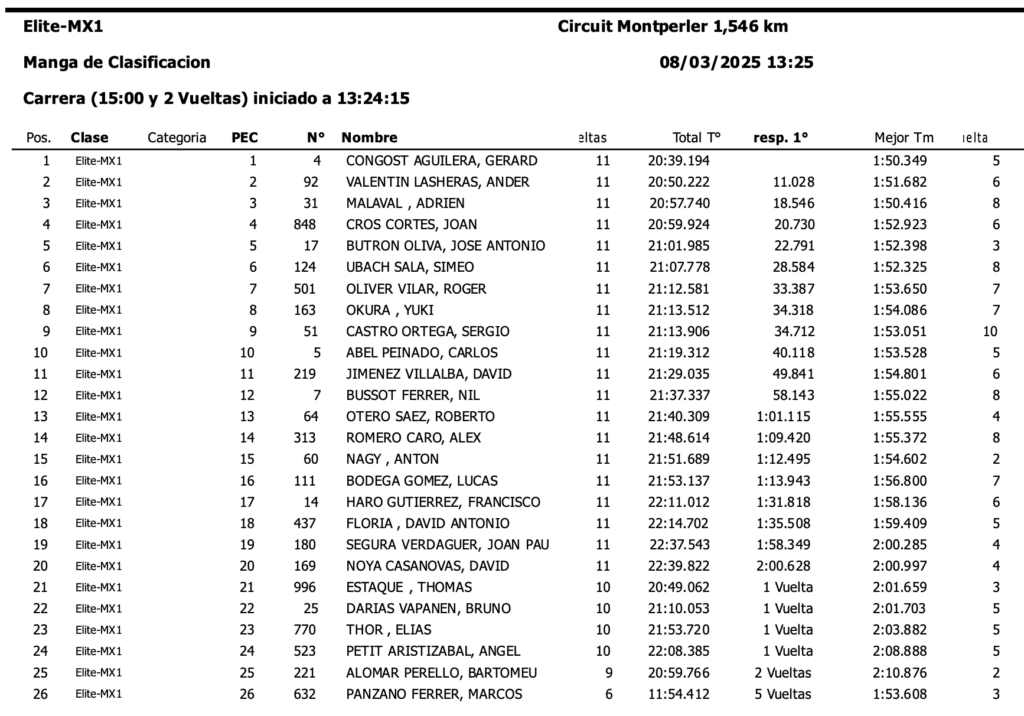 Gerard Congost se ha anotado la manga clasificatoria de MX1 en la tercera cita del Nacional de Motocross 2025, que se está disputando en Bellpuig, Lleida.