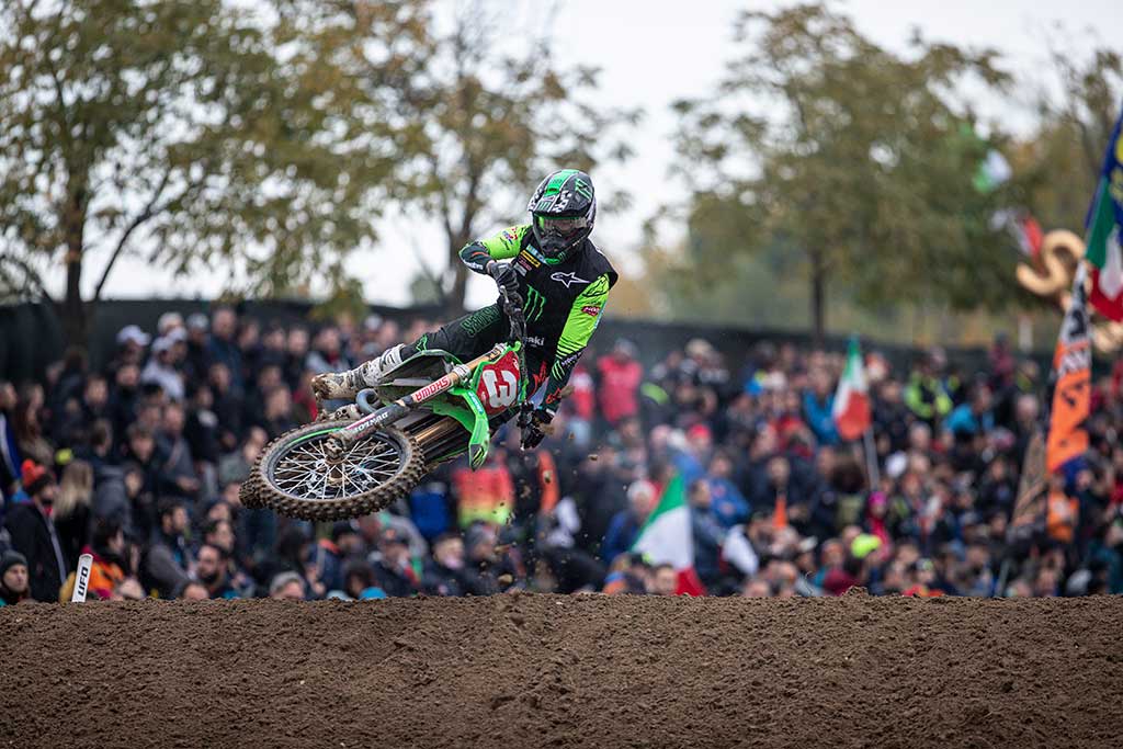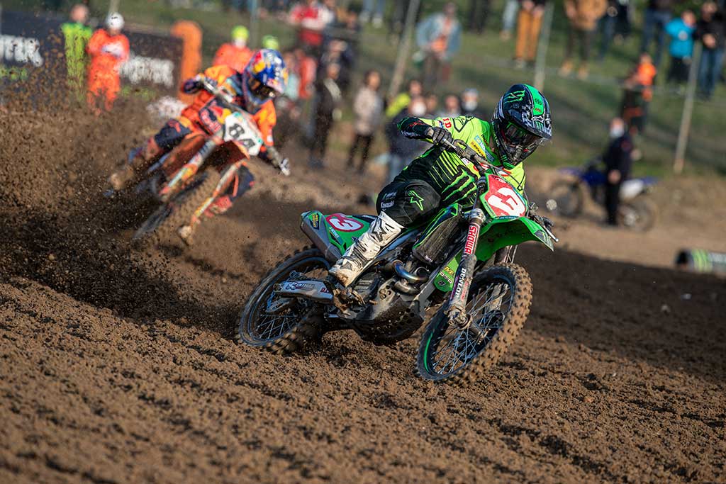 La última vez que Febvre portó la placa roja con Kawasaki fue hace cuatro años, en la recordada final del Mundial 2021 en Mantova, donde llegó empatado a puntos con Jeffrey Herlings en la última manga del año.