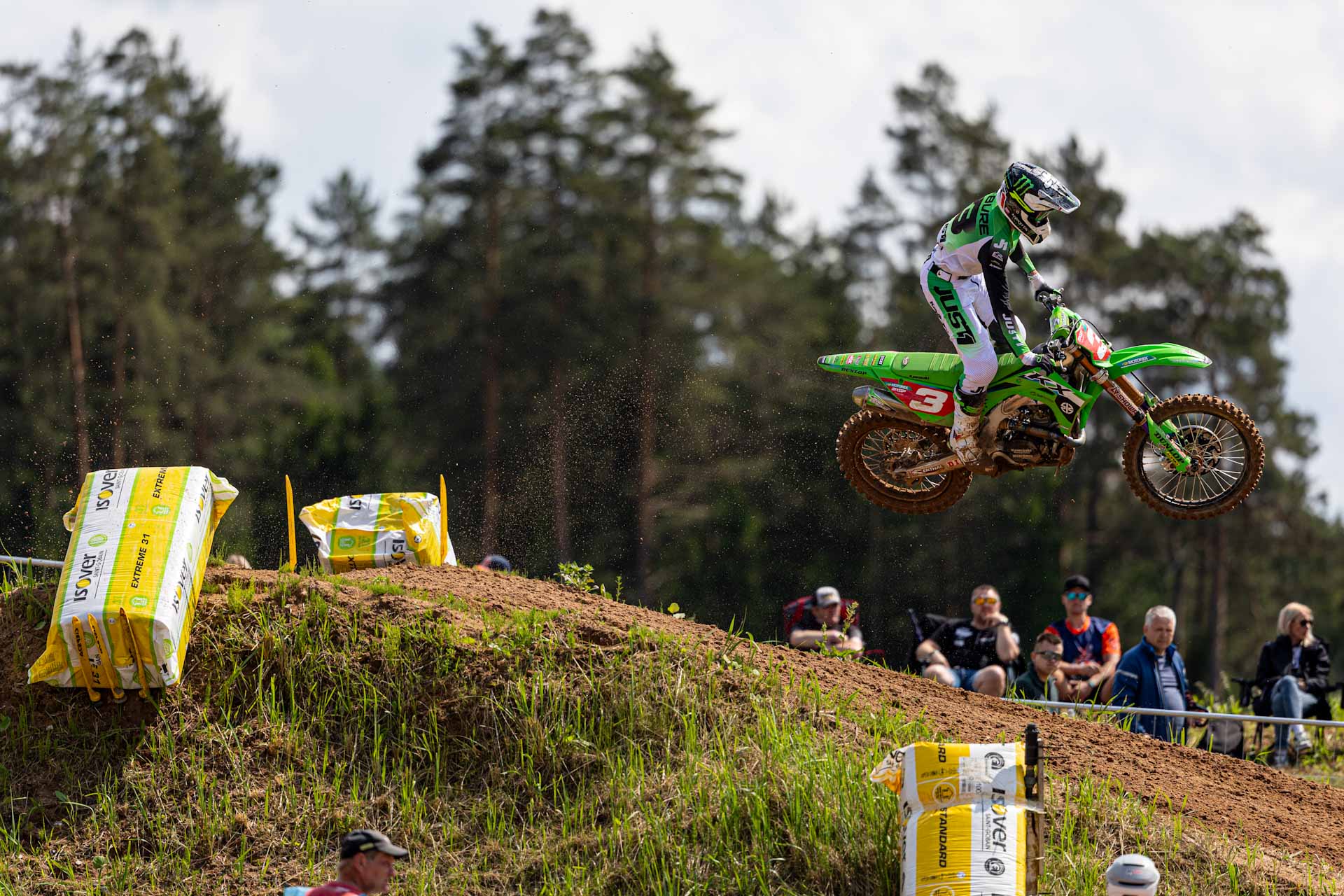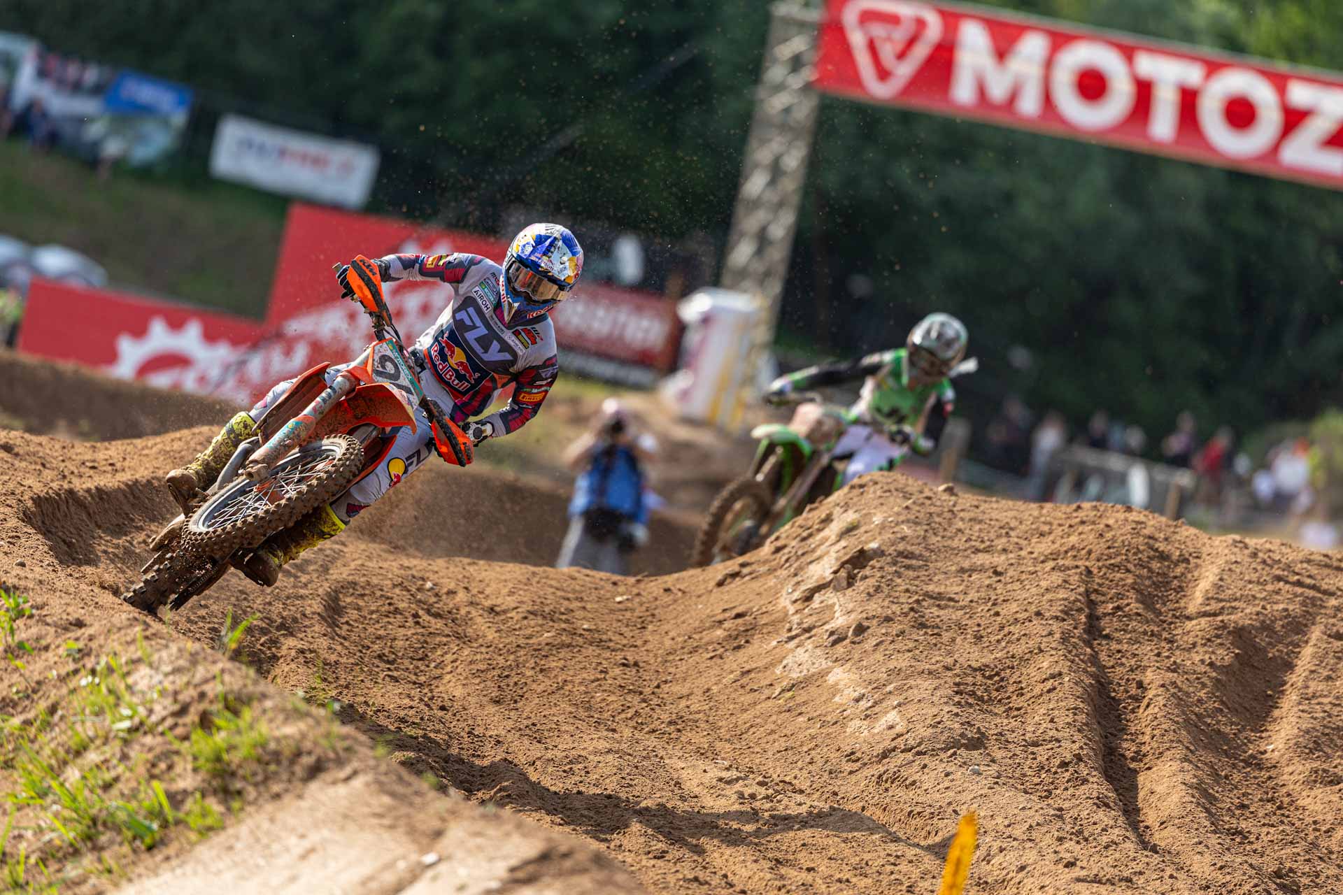 Tras las KTM, Romain Febvre (Kawasaki KRT) completó el podio con un 6-3 en mangas. El francés salvó el día con un tercer lugar en la segunda manga, aunque su sexta plaza en la primera (su tercer resultado fuera del Top 5 en lo que va del año) le costó puntos valiosos en la lucha por el campeonato. Su ventaja se ve ahora reducida a 26 puntos respecto a Coenen.