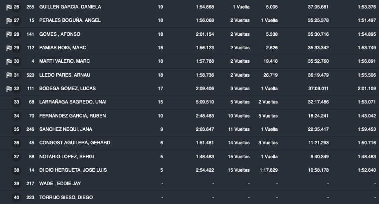 Guadagnini se volvía a poner primero para ampliar mucho las distancias. Le seguía Tom Guyon. Mientras, por detrás Mario Lucas iba escalando posiciones hasta superar la bandera de cuadros en la tercera posición, la que ocupó Guillem Farrés hasta los minutos finales, pero acababa séptimo.