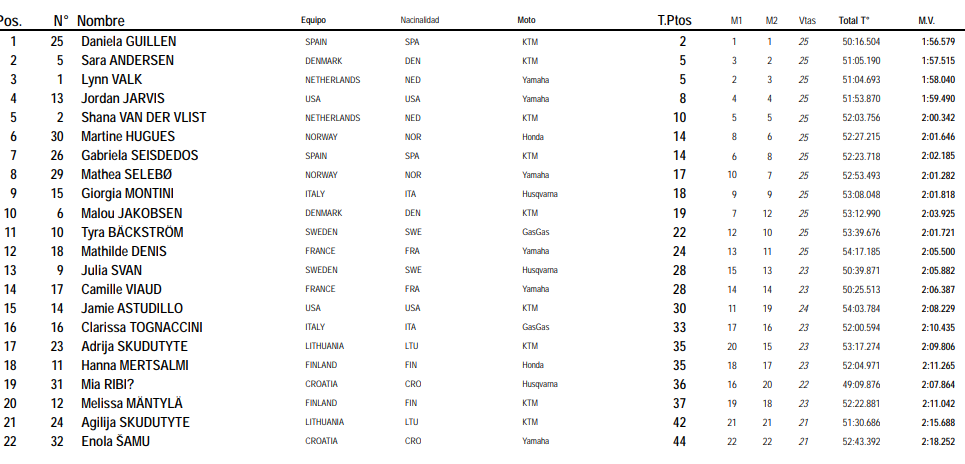 Las pilotos del equipo oficial RFME, Daniela Guillén y Gabriela Seisdedos, han escrito un nuevo capítulo en la historia del motocross español y femenino al lograr el título de las naciones europeas de la categoría féminas, en la edición 2022 del Motocross de las Naciones Europeas, celebrado en Talavera de la Reina.