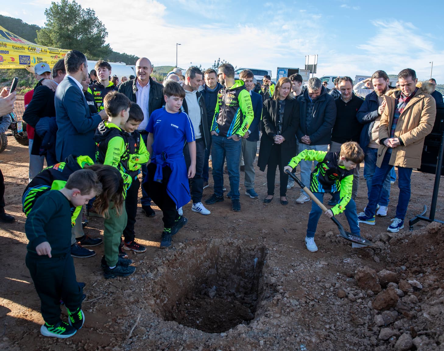 Con la presencia del piloto de motocross del equipo Honda Maddii Racing Elías Escandell y el dakariano Toni Vingut, entre otros, se llevó a cabo el acto protocolario de colocación de la primera piedra.