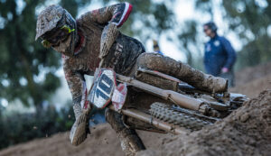 Shimoda snared a fourth-place start and was quickly up to second. He rode in that position—regularly challenging for the lead—for much of the race, until he went down in a corner with just four laps remaining. Although it was essentially a tip-over, the incident was awkward enough that it resulted in a broken collarbone for the Japanese rider, who was forced to withdraw. Meanwhile, Hymas started the second moto, but the effects of his moto 1 crash were such that he pulled out at about the one-third mark.