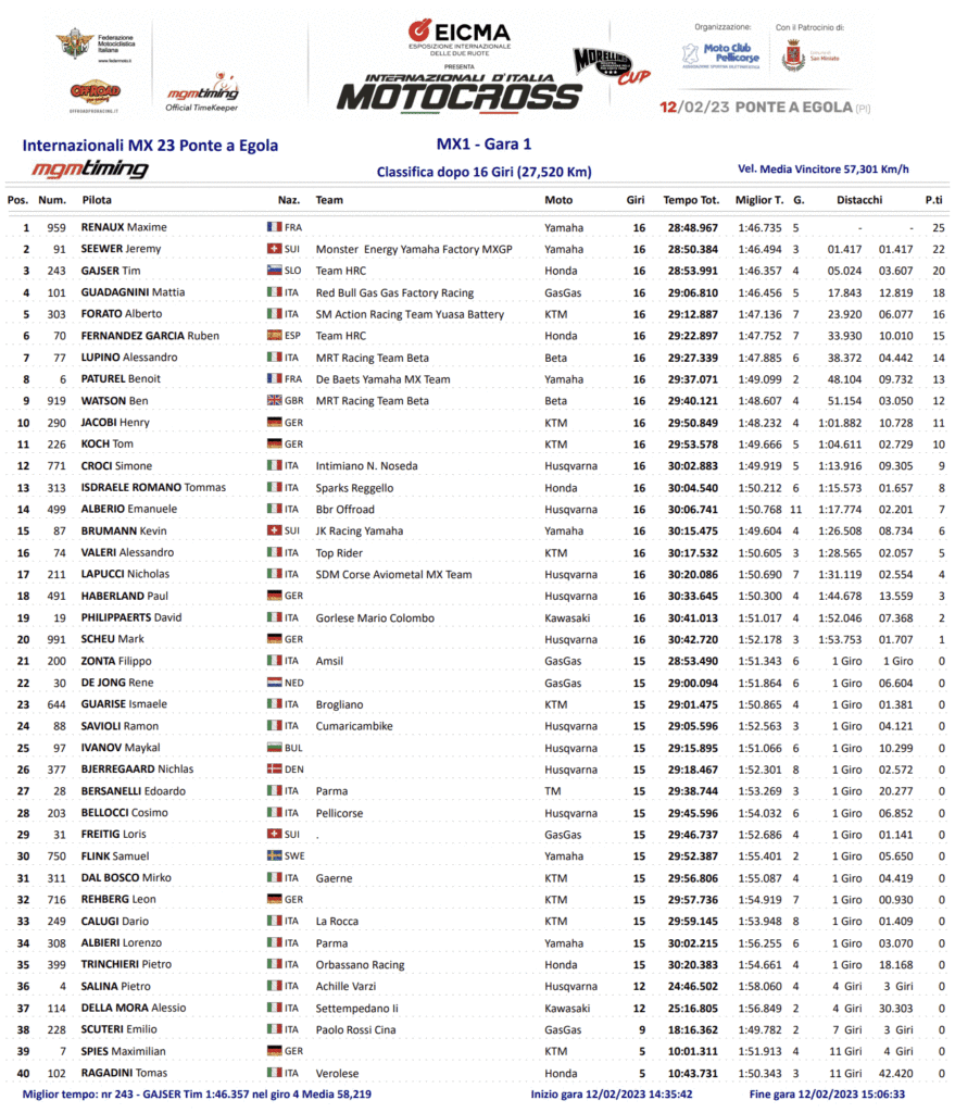 Race results and overalls from the first round of the Italian International Championship, held at the Ponte A Egola track.