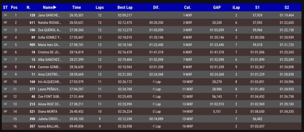 Carmen Gómez, que ha estado rodando durante gran parte de la carrera entre la segunda y la tercera plaza, ha sufrido una dura caída que le ha relegado a la octava posición final.