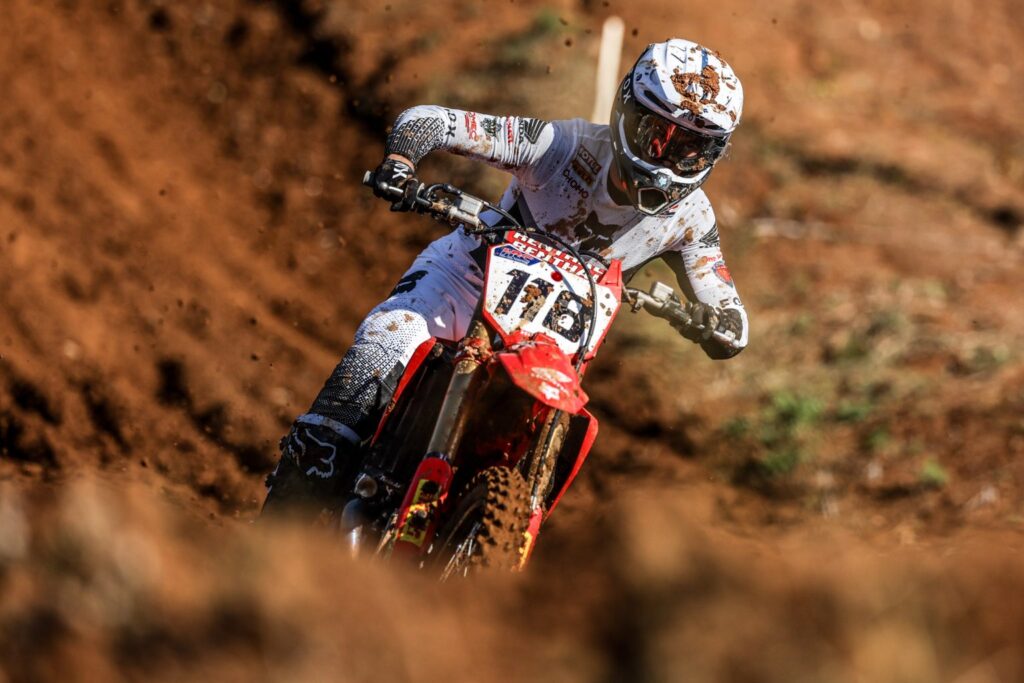 Valerio Lata (HRC), in just his second outing aboard a 450 machine, impressed once again with a strong 2-2 score for second overall. The young Italian showed great pace, making several key passes in the early laps of each race. Rounding out the podium was Yamaha’s Kainosuke Oshiro with consistent 3-3 finishes.