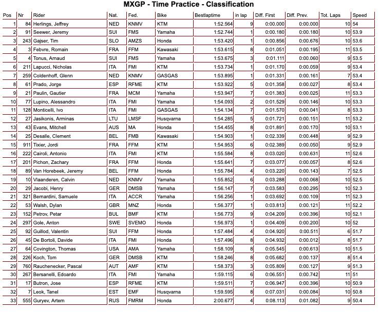 Jeffrey Herlings, en MXGP, y Maxime Renaux, en MX2, han sido los pilotos más rápidos en los entrenamientos cronometrados en la primera de tres rondas en Faenza, Italia.