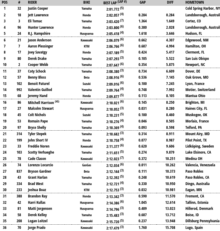 Acaban de actualizarse los resultados de la Q1. Justin Cooper ha sido el más rápido. Prado, por su parte, se encuentra en el puesto 36° cuando todavía queda una sesión de cronos por delante.