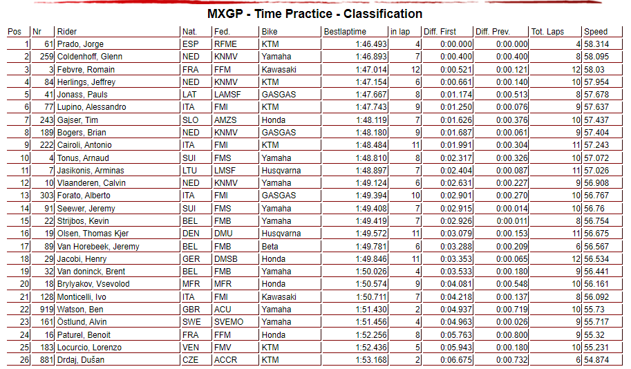 Prado se coloca escolta de Gajser a 13 puntos y Herlings poco a poco sigue sumando.