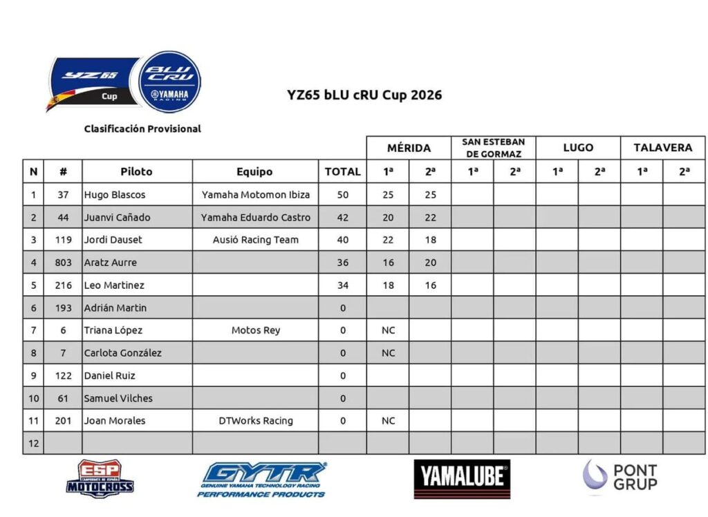 El Campeonato de España de Motocross Júnior ha arrancado este fin de semana en el circuito Vía de la Plata de Mérida. Y, en paralelo, como viene siendo habitual desde 2015, se ha estrenado una nueva temporada del programa bLU cRU de Yamaha, un sistema único diseñado para identificar, desarrollar y promocionar jóvenes talentos de todo el mundo en el panorama del motocross.