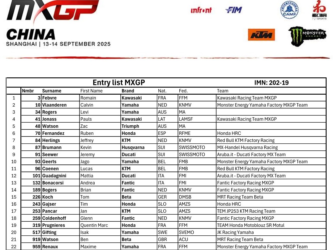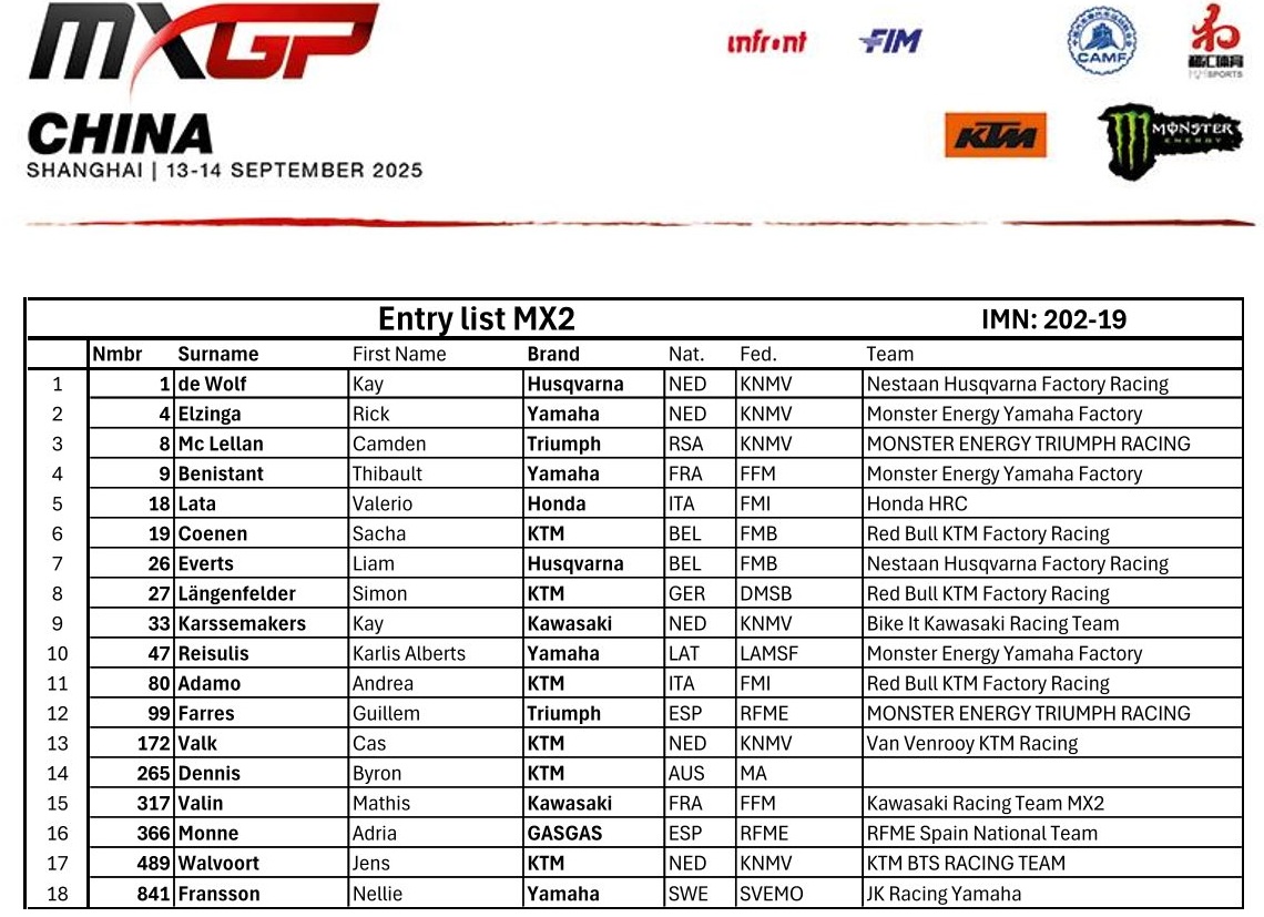 La penúltima ronda del Mundial de Motocross 2025 llega este fin de semana a Shangái, China. Una prueba que contará con tres pilotos españoles. A los ya habituales Rubén Fernández (MXGP) y Guillem Farrés (MX2) se une en la categoría de 250cc Adrià Monné, que sube del Campeonato de Europa para disputar esta cita y la de Australia en Darwin en dos semanas.