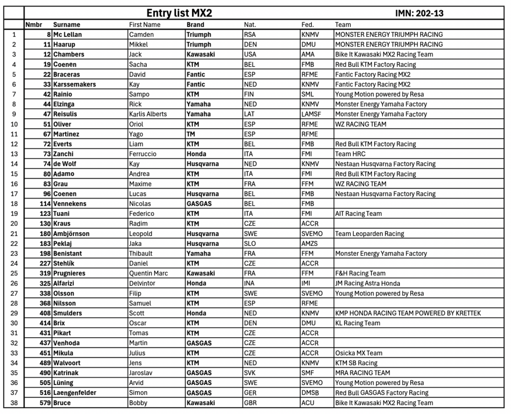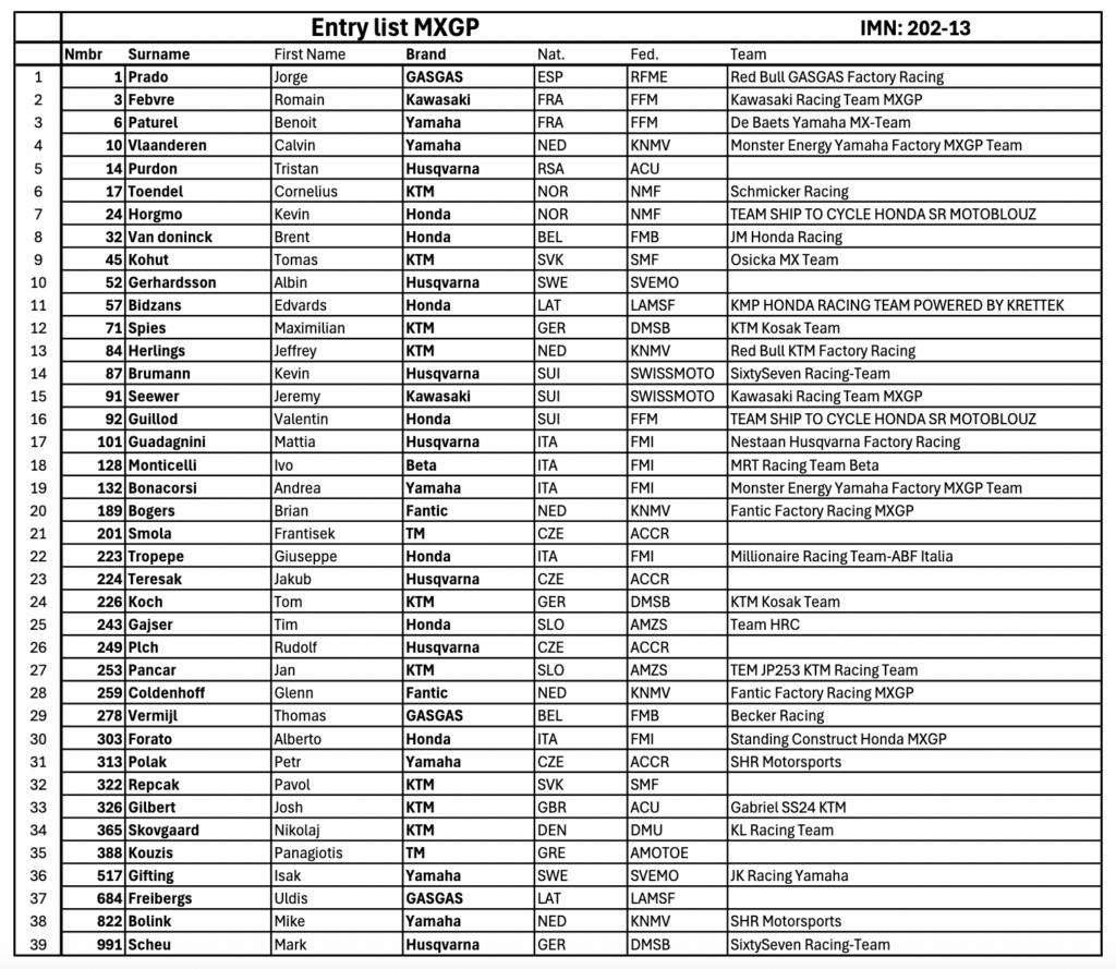 En MXGP Jorge Prado volverá a ser la gran baza española. En MX2, Samuel Nilsson se une a David Braceras, Oriol Oliver y Yago Martínez.