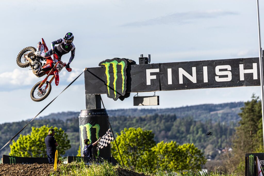 As Coenen pulled away at the front, chaos ensued at the back. Valentin Guillod was the first to crash violently. Later, Tim Gajser also suffered a hard crash when he was in second place. The HRC rider was unable to continue and the first suspicions point to a possible broken collarbone, although there is no official confirmation at the moment.