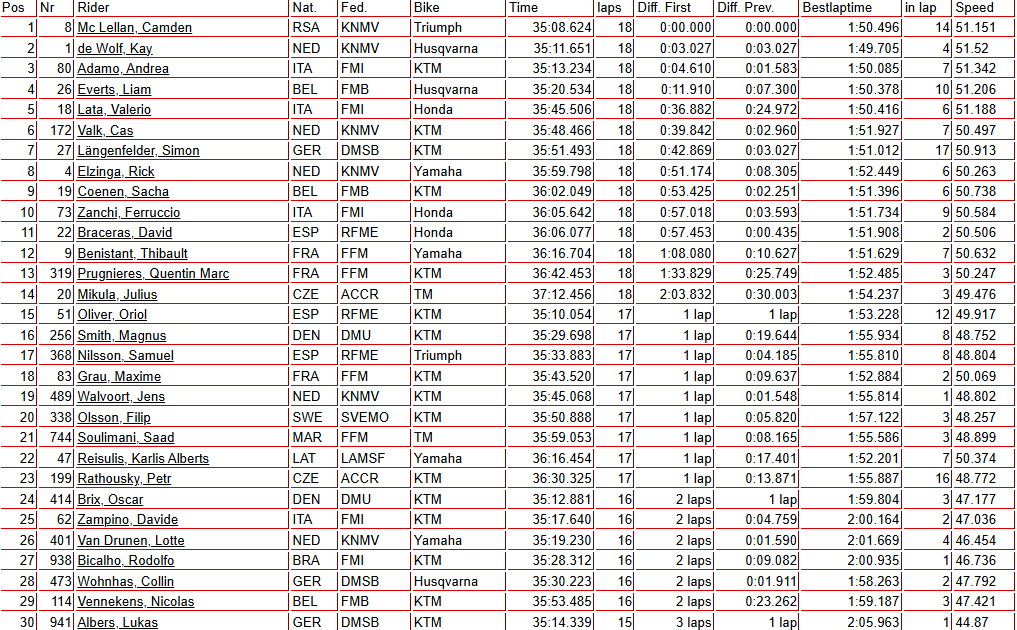 Thibault Benistant snatch the win from Adamo´s hand in the last lap. This is the first race win for Benistant, but despite the furstration, Adamo won the overall via 3-2 in motos.