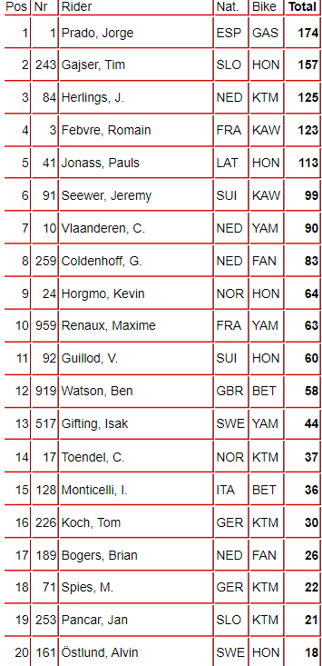 Top 20 MXGP Overall