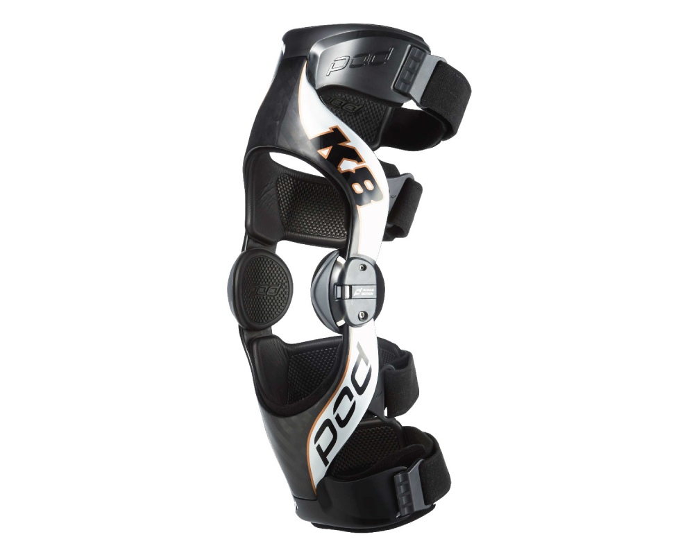 Las POD K8 2.0 proporcionan una protección del juego de la rodilla permitiendo al mismo tiempo un control del movimiento progresivo y multidireccional. Los Synthetic Ligaments™ creados por Vectran Fibers™, son 5 veces más fuerte que el acero. De esta forma la carga de tensión se la llevan los ligamentos de la rodillera. Las protecciones tienen certificación CE contra impactos.